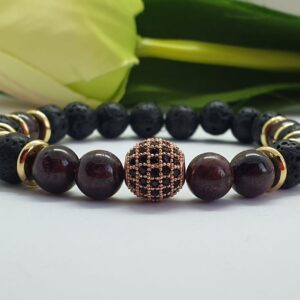 Gránát - lávakő ásvány karkötő cirkonnal
