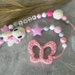 2 az 1-ben horgolt nyuszis rágcsa- és cumilánc pillangóval