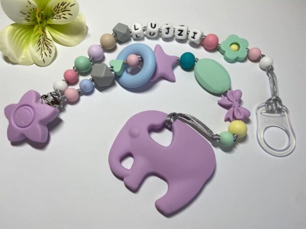 2 az 1-ben lila elefántos rágcsa- és cumilánc névvel