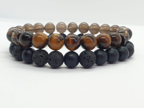Füstkvarc- tigrisszem és lávakő páros ásvány karkötő