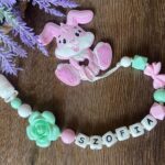 Horgolt nyuszis rágcsa- és cumilánc pillangóval