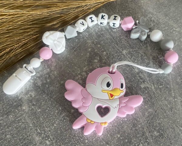 A különféle méretű szilikon gyöngyök, medálok, figurák rágcsálás közben masszírozzák az ínyt, ezzel könnyítve a fogak kibújásával járó nehézségeket. Nyugtató hatásúak és játék közben elterelik a baba figyelmét a fogzás okozta esetleges kellemetlen tünetekről.