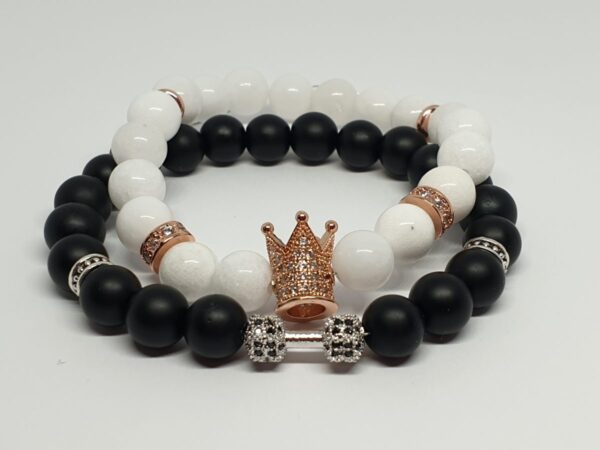 Anyaga: jade, onix, cirkon Gyöngyök mérete: 8 mm, 10 mm Karkötő mérete: egyedi méret szerint (15 – 21 cm) Elkészítés ideje: 2- 5 munkanap