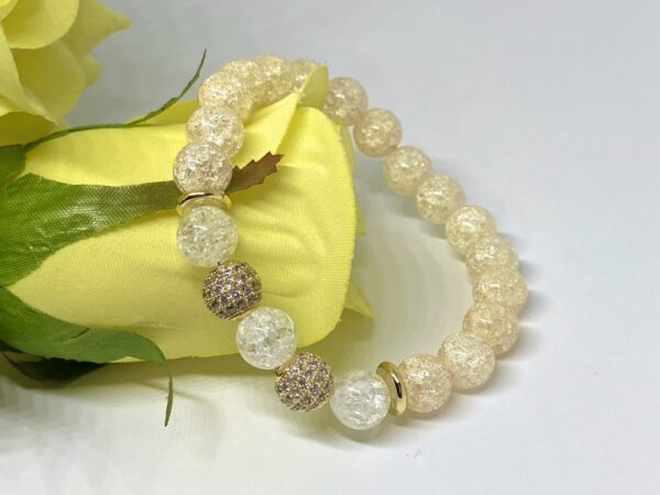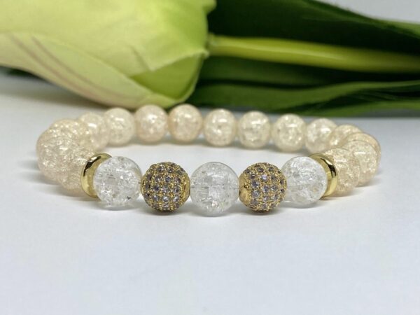 Anyaga: roppantott hegyikristály, cirkon Gyöngyök mérete: 8 mm Karkötő mérete: egyedi méret szerint (15 – 21 cm) Elkészítés ideje: 2- 5 munkanap