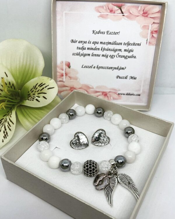 Keresztanya felkérő ásvány karkötő fülbevalóval