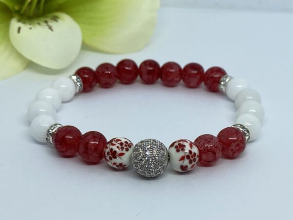 Piros árnyalatú ásvány karkötő cirkon díszítéssel