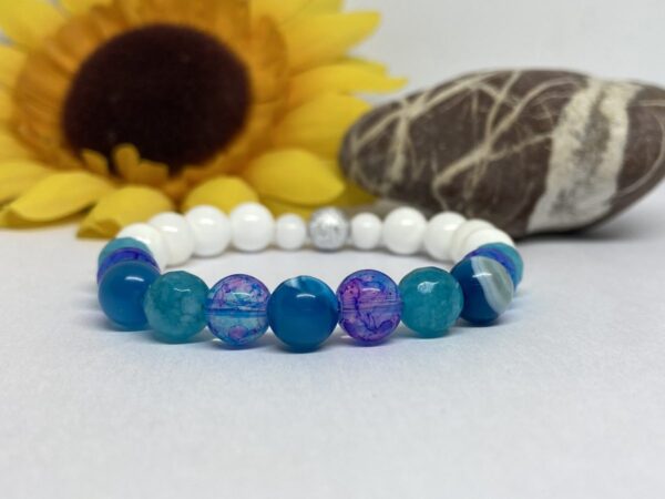 Anyaga: achat, akvamarin, üveg, jade Gyöngyök mérete: 6 mm, 8 mm Karkötő mérete: egyedi méret szerint (15 – 21 cm) Elkészítés ideje: 2- 5 munkanap