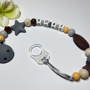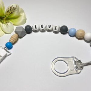 Szürkés kékes cumilánc egyedi névvel
