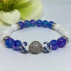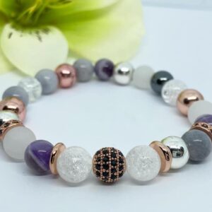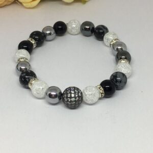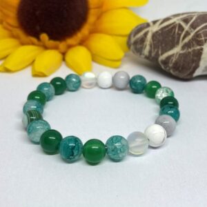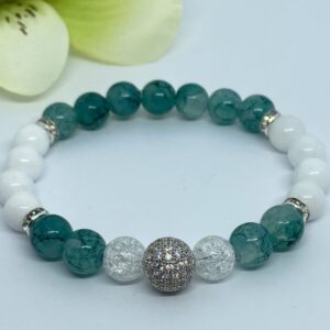 Zöld árnyalatú ásvány karkötő cirkon díszítéssel