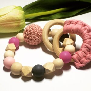 Rózsaszín marokrágcsa fakarikával