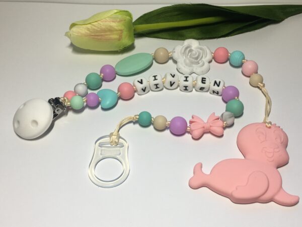 2 az 1-ben rózsaszín fókás cumi- és rágcsalánc
