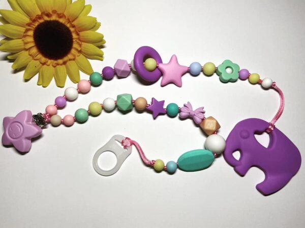 2 az 1-ben lila elefántos rágcsa- és cumilánc