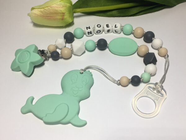 2 az 1-ben zöld fóka cumi-és rágcsalánc