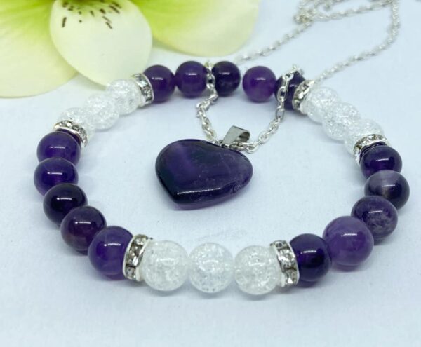 Ametiszt- hegyikristály ásvány karkötő ametiszt szíves nyaklánccal