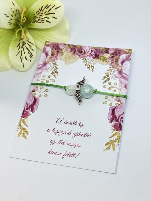 Angyalkás -minimal- zöld karkötő ajándékkártyával