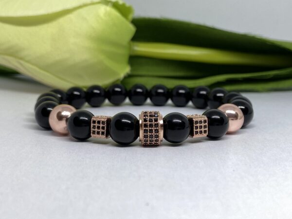 Hematit ásvány karkötő rosegold cirkon díszítéssel