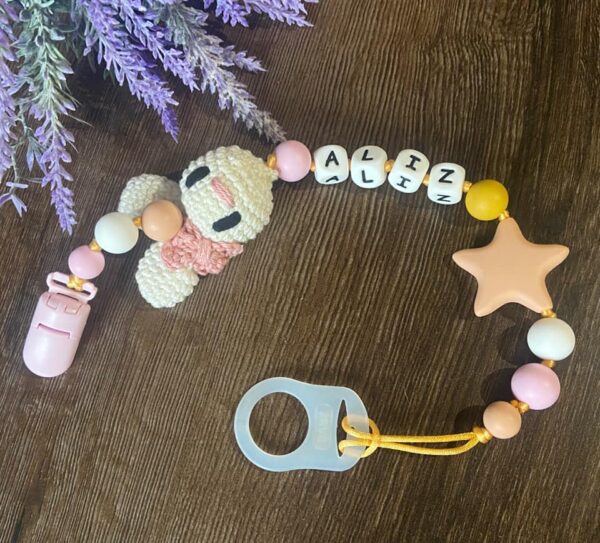 Horgolt nyuszis cumilánc csillaggal