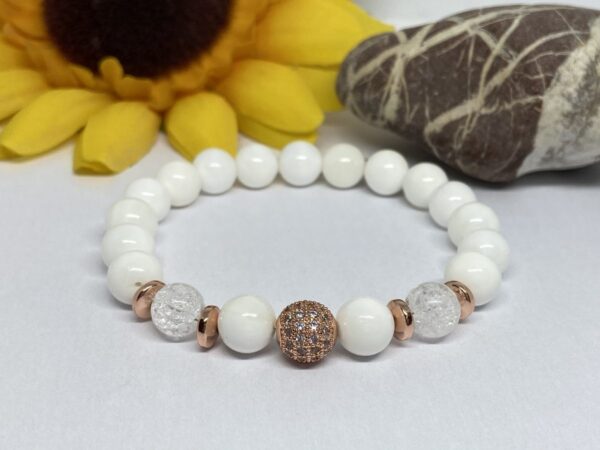 Jade- hegyikristály páros ásvány karkötő rosegold cirkon díszítéssel