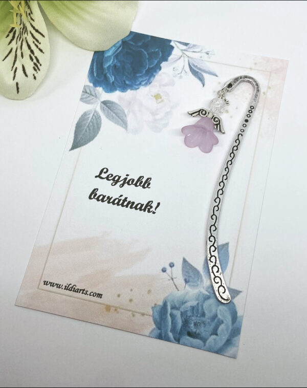 Lila angyalkás könyvjelző ajándékkártyával