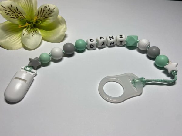 Menta és szürke színű cumilánc