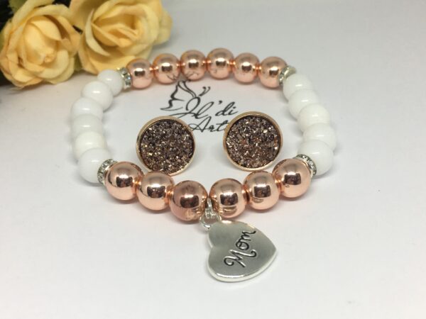 ,,Mom” feliratos jade és rose gold hematit ásványkarkötő fülbevalóval