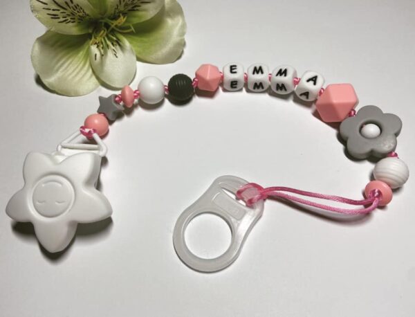 Rózsaszín- szürke színű cumilánc