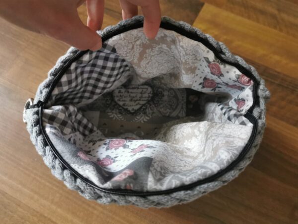 A táska alapanyaga újrahasznosított 5 mm-es pamut-zsinórfonal (100% pamut), mely OEKO-TEX STANDARD 100 tanúsítvánnyal rendelkezik.
