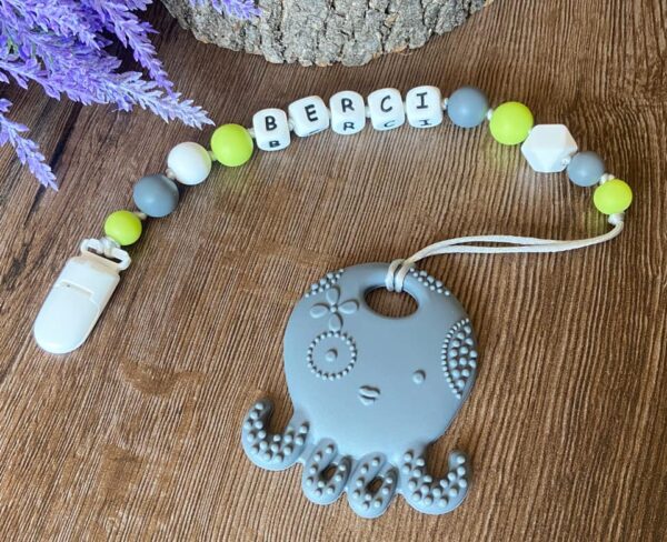A különféle méretű szilikon gyöngyök, medálok, figurák rágcsálás közben masszírozzák az ínyt, ezzel könnyítve a fogak kibújásával járó nehézségeket. Nyugtató hatásúak és játék közben elterelik a baba figyelmét a fogzás okozta esetleges kellemetlen tünetekről.