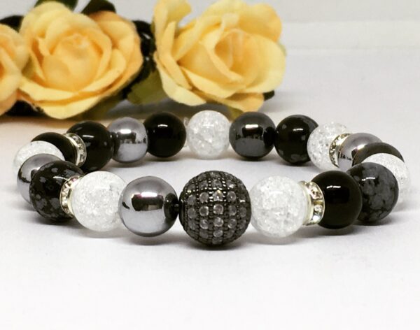 Matt onix és rose gold hematit páros karkötő cirkóniával