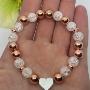 Rose gold hematit- hegyikristály ásvány karkötő